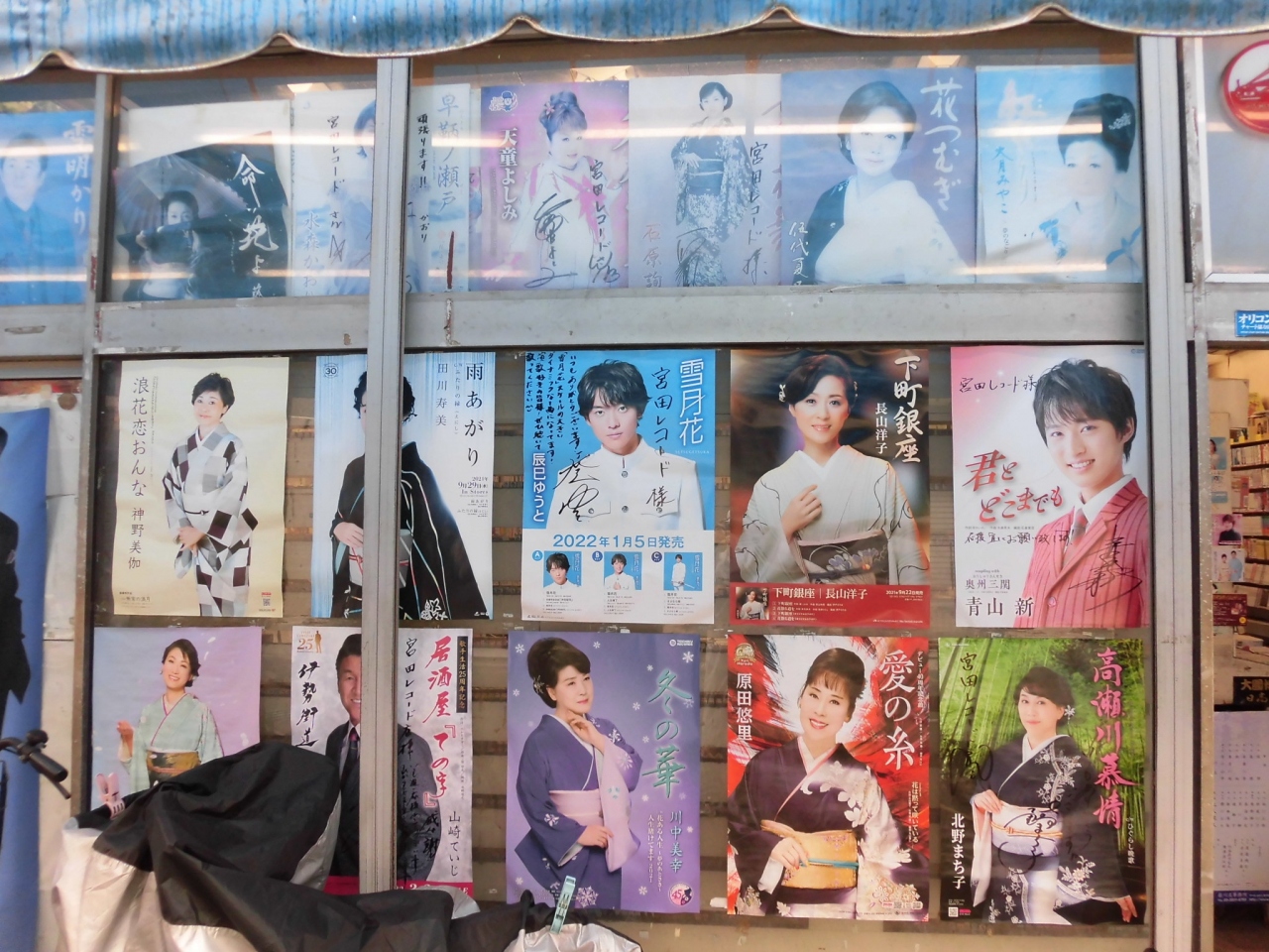 浅草界隈を散策していた時に、レコード屋さんがあったので立ち寄りました。今ではほとんど見かけることのない、一時代前のレコード屋さんは、とても懐かしく感じました。浅草自体が、どこか郷愁を誘う町なので、ぴったりのお店だと思いました。お店の前に貼りだされているポスターも、当然演歌が中心なので面白かったです。