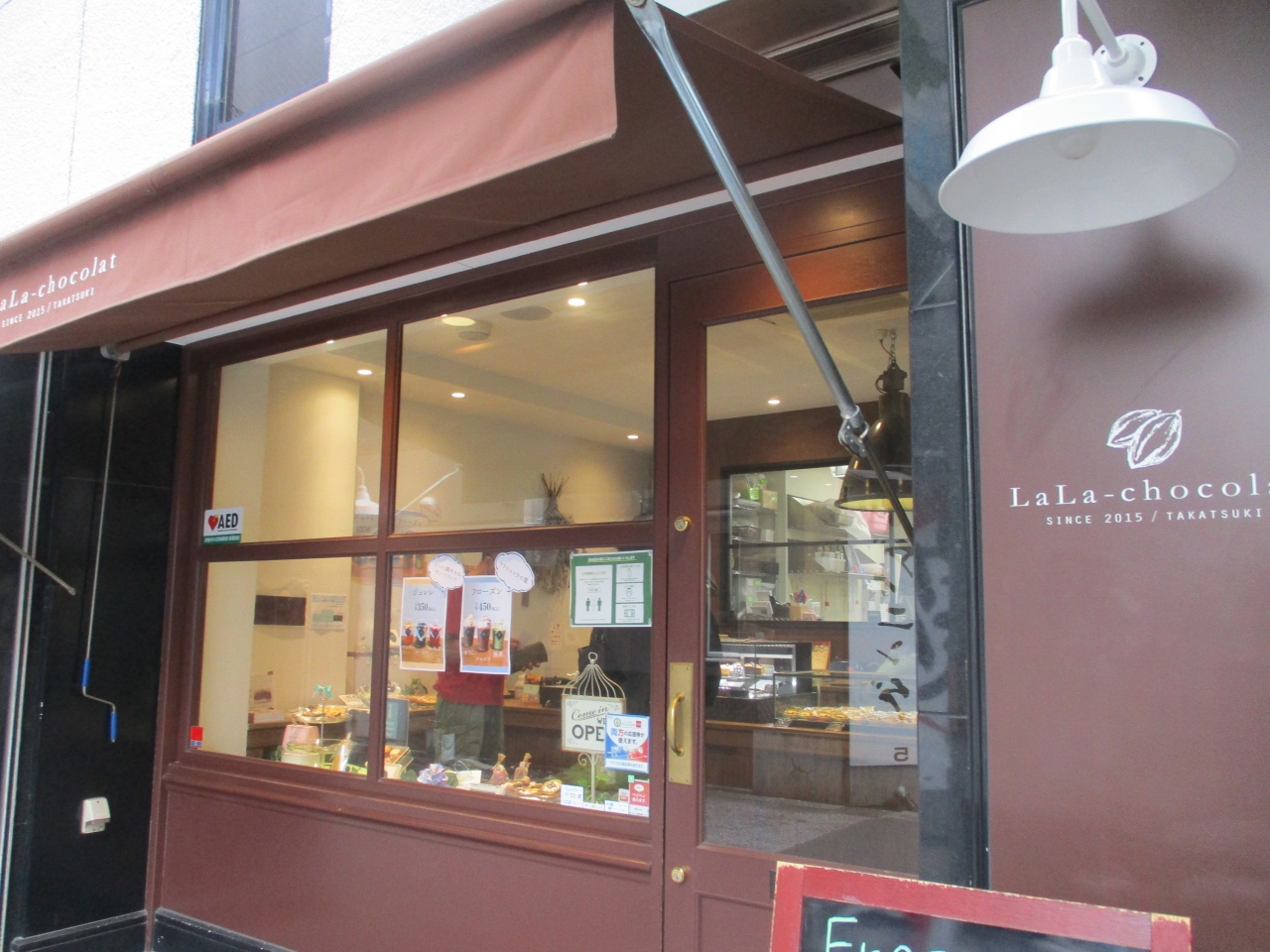 阪急高槻市駅の南側にあるチョコレートや焼き菓子のお店です。ちょっと奥まった目立たない場所にお店があります。外観もチョコレート色で、大きなガラス窓のそばに商品ディスプレイもあります。トッピング付きチョコレートなどお洒落です。ギフトにも喜ばれると思います。