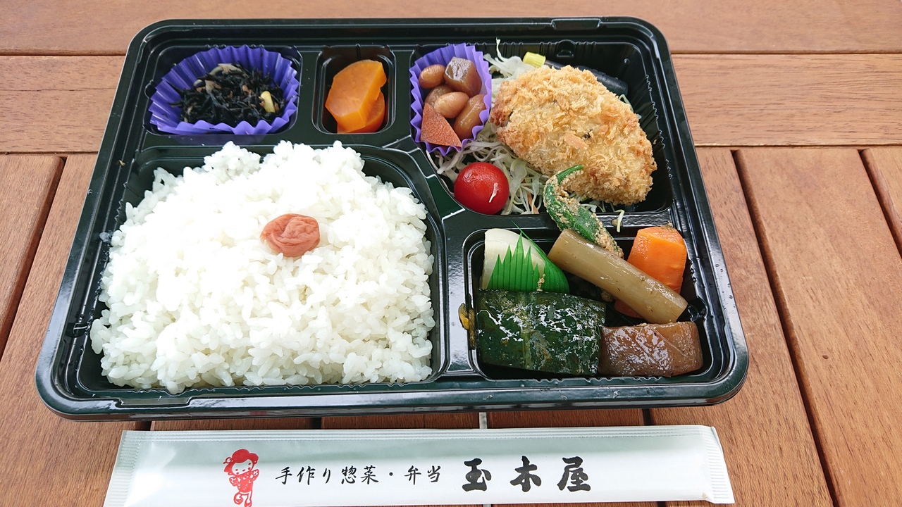 6月上旬の平日お昼前の時間帯に訪問しました。店内は、お客さんで賑わっていました。少しだけ考えた後、購入したのは、日替わり弁当。その日の主菜は、おからコロッケでした。コロッケなのに、あっさりしており、野菜もたっぷりということで、ヘルシーだな、と感じました。