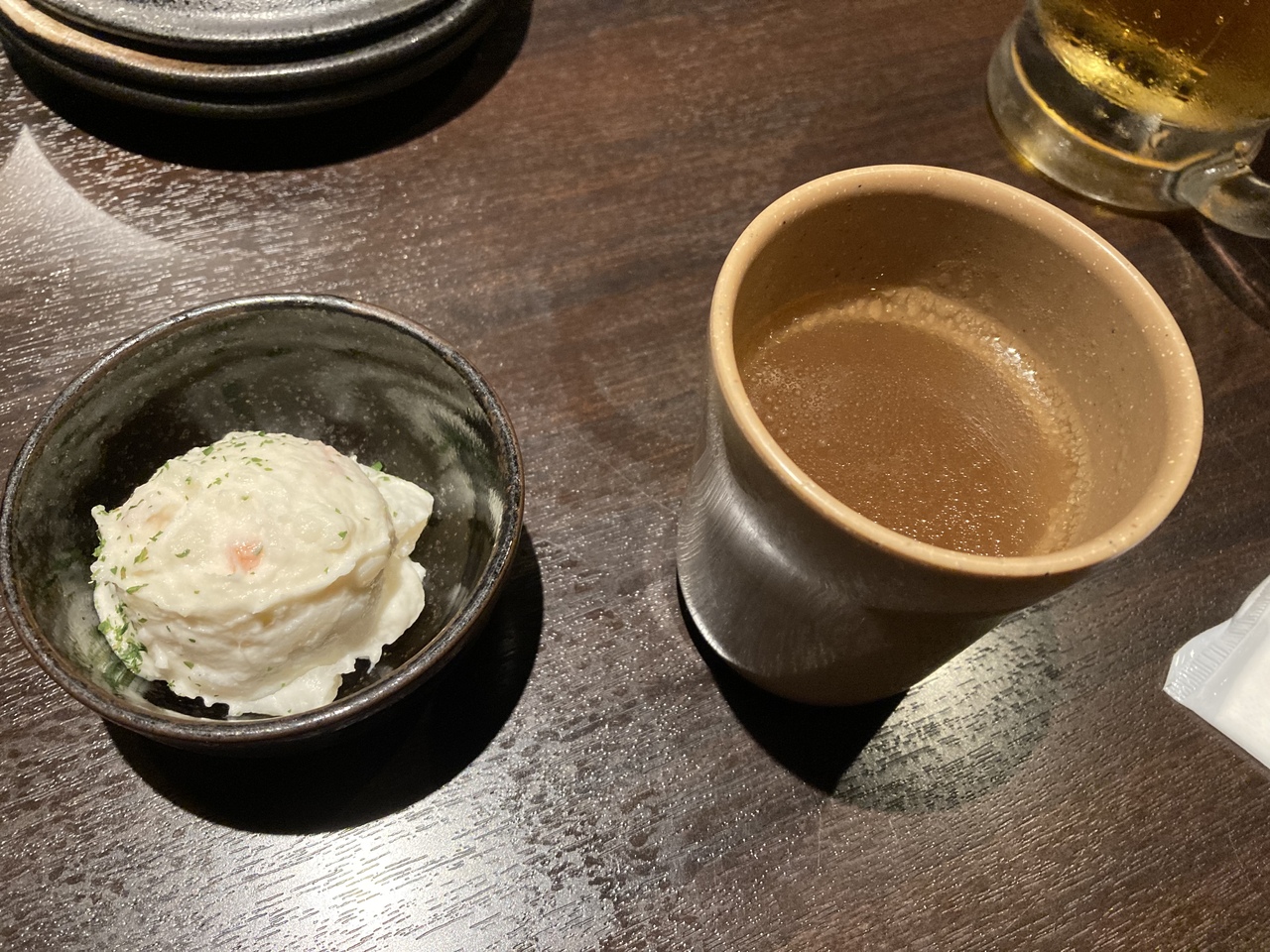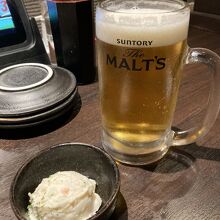 生つくねは、柔らかく、ジューシーさが損なわれていない。タレがかかっている生つくね専用ごはん(290円)(全て税抜)と一緒に食べると、十分な食事となる。ザンギも290円とは思えないクオリティで美味(ジューシーさは少し残念だが、価格を考えればかなりなもの)。飲み放題の生つくねスープは、出汁がしっかり出ていて美味。3杯も飲んでしまいました。飲み放題が90分(ラストオーダー15分前)で750円、120分で980円で、サントリー•モルツの中ジョッキ(390円)をはじめ100種類のお酒とソフトドリンクが含まれているので、2杯以上飲むならこちらがかなりお得。サワー、日本酒、カクテルと、種類も豊富。