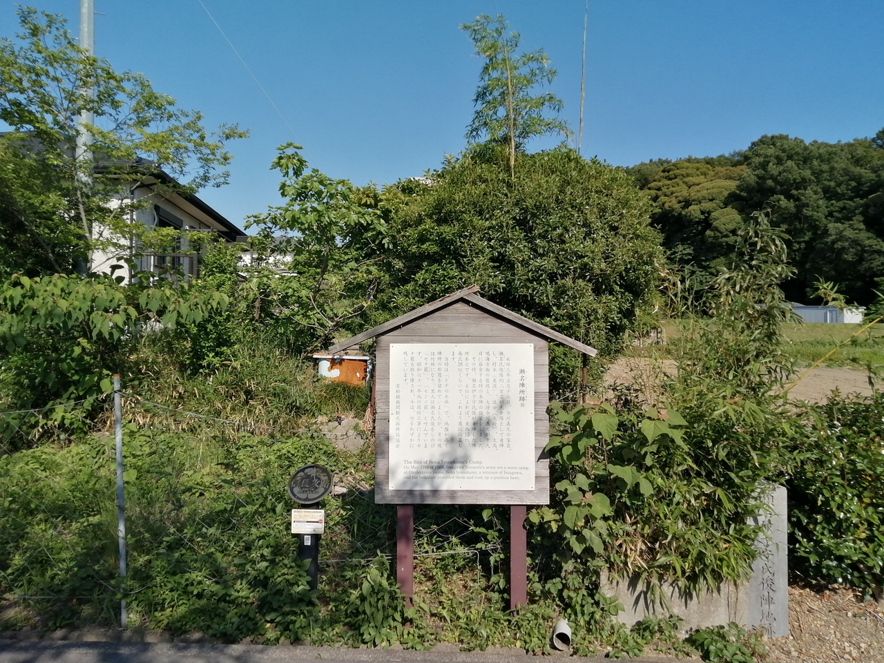 桶狭間の戦いで敗れた今川義元の身内でもあり家臣でもあった瀬名氏俊が先発隊としておけはざま山に本陣を設営するために着陣した所です。とは言っても現在は遺構は何も残されていません。それを示す石柱と由緒板が立てられているだけです。