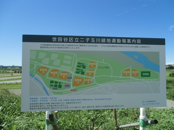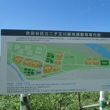 二子玉川駅出入口から西へ約770m、多摩川の河川敷にある運動場です。