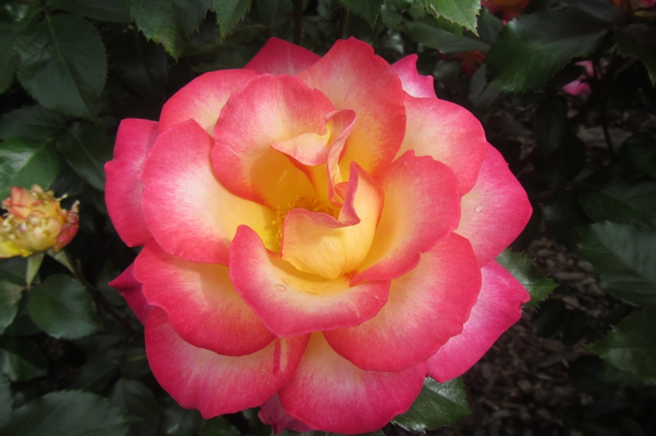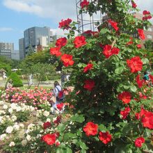 よく整備されたバラ園で、最盛期には大輪の花がいっぱい咲きます。