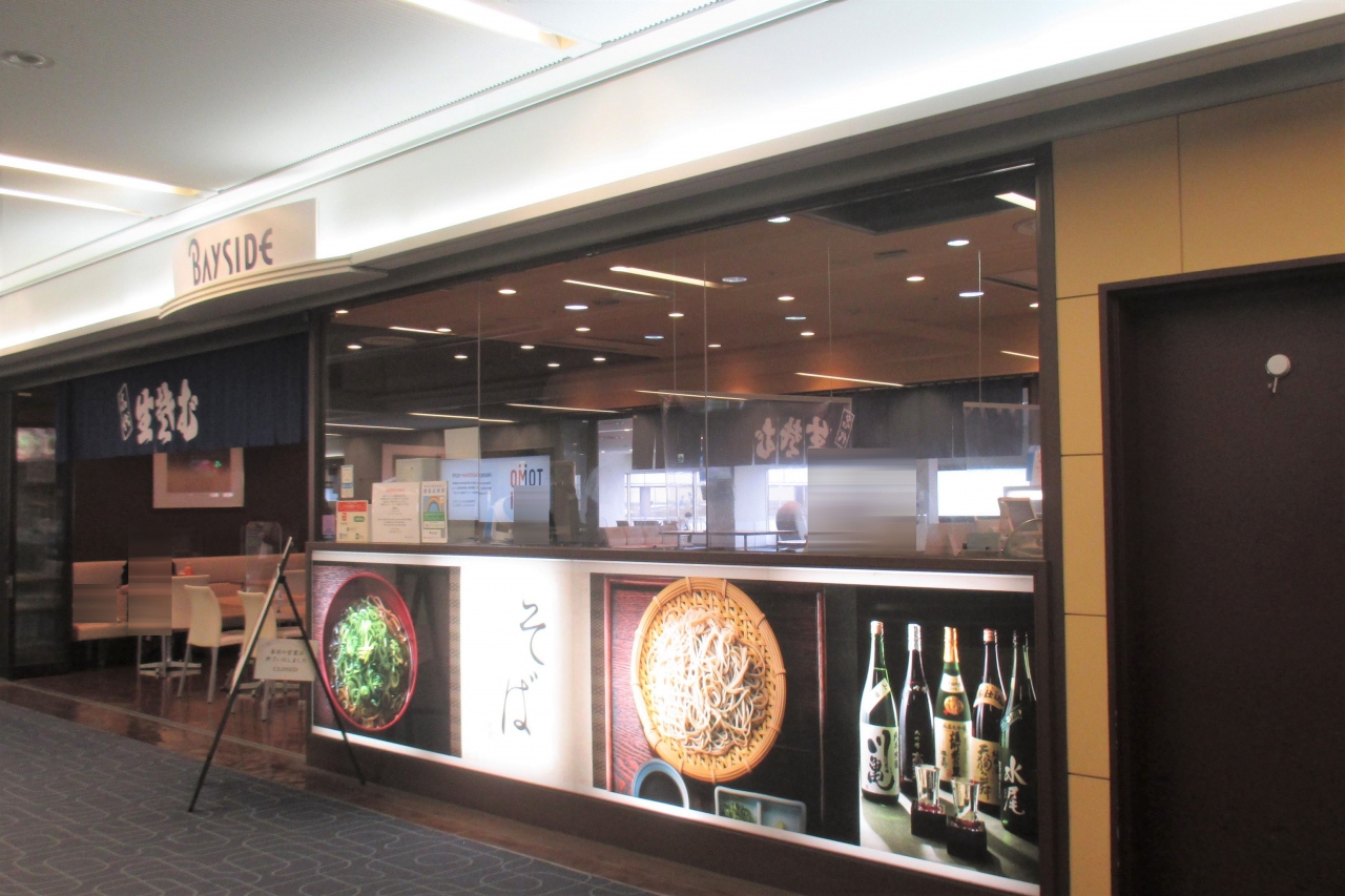 第3ベイサイドは第1ターミナルの南出発ゲートの3番搭乗口の近くにありました。空弁を買おうかと思って早めに搭乗口に行きましたが、隣にあるそば処・第3ベイサイドに目が移って利用しました。テーブル席ですが、駅の立ち食いそば屋が空港に移ってきた感じで、注文から出来上がりまでがたいへん早かったです。