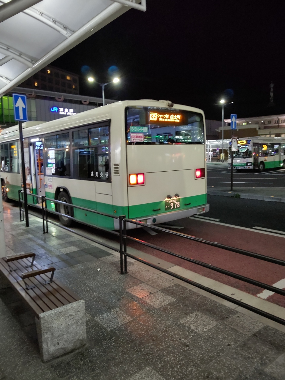 奈良市内を走る路線バスです。市民の通勤や通学、買い物などの足として利用されているだけでなく、観光地までのアクセスとして観光客の利用もあります。奈良駅前にはバスターミナルがあり、バスがひっきりなしに発着しています。