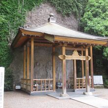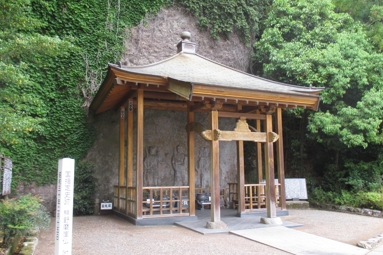 隣にある元宮八幡神社から名前を付けられた元宮磨崖仏は、県道655号線沿いにありました。今は6体ありますが、元々は左右に脇侍の制多迦(せいたか)童子、矜羯羅(こんがら)童子を従えた不動明王を中央に、右には毘沙門天、左に持国天の5体だったそうです。室町時代の作とみられるそうです。1番左にある像は後から追加されたそうで、声聞形(しょうもんがた)尊像か地蔵菩薩とみられるそうです。