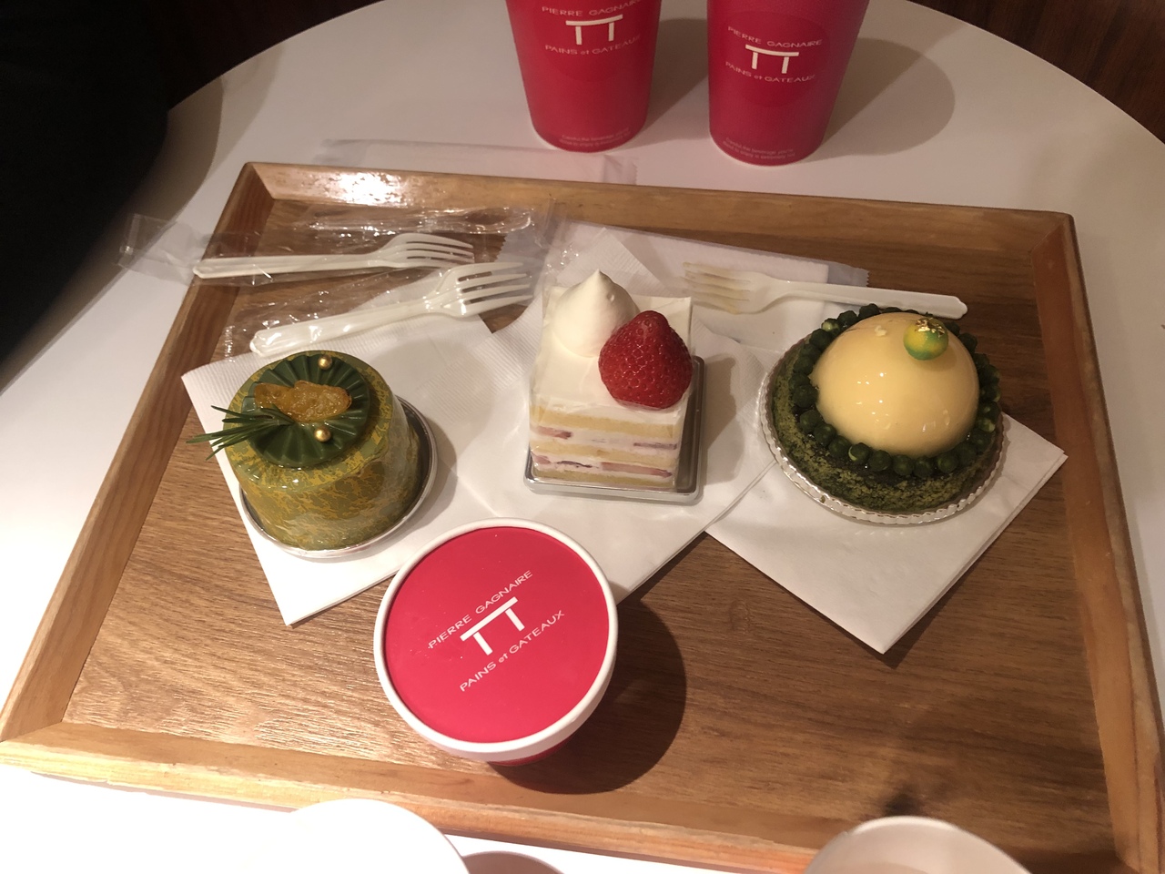 午後にコーヒーと美味しいケーキをいただきたく、訪問しました。商品はどちらも綺麗に陳列してあって、選ぶのに悩んでしまいました。旦那さんとケーキ3種とアイスクリーム を分け合いっこしていただきました。どちらも美味しかったです。抹茶のケーキは、抹茶の旨味があって人工的な味は感じませんでした。パンもお土産にたくさん買いました。餡子のお洒落なデニッシュパンや抹茶パンに餡子が挟まったものなど、日本の伝統的な味をうまく残しつつ、和と洋の素晴らしい融合の見た目も芸術的に綺麗なものばかりでした。是非是非また利用したいです。