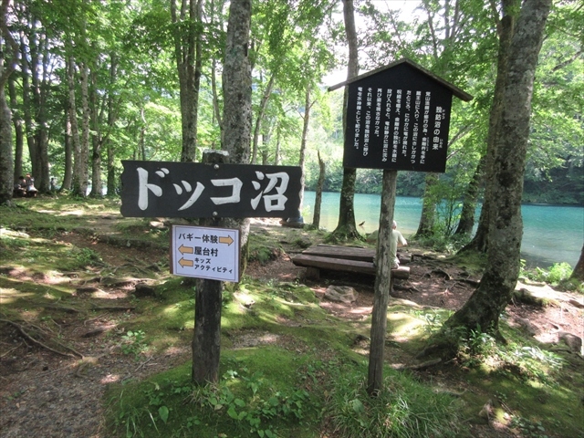 覚山法師が修行のためにこの沼を訪れたところ,龍が現れたため,持っていた独鈷を投げ入れてこれを修めたことからドッコ沼と呼ばれている沼です.大きな沼ではありませんが,ブルーに染まる独特の色を有した水は神秘的でもあります.近くにはスキー場を利用した屋台村や各種のアクティビティもあるので,子供連れでも楽しめます.ただ,車で蔵王温泉から行く場合には,細い山道を登らなければ行けないので,運転には注意が必要です.また,今回は一部が通行止めになっていて,ドッコ沼から来た道を引き返さなければいけなかったのが少し残念でした.