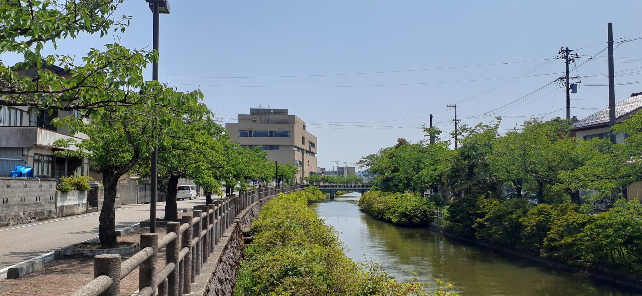 氷見市はシャッター商店街のような大きな商店街がありますが、そこから少し入った川沿いの道です。