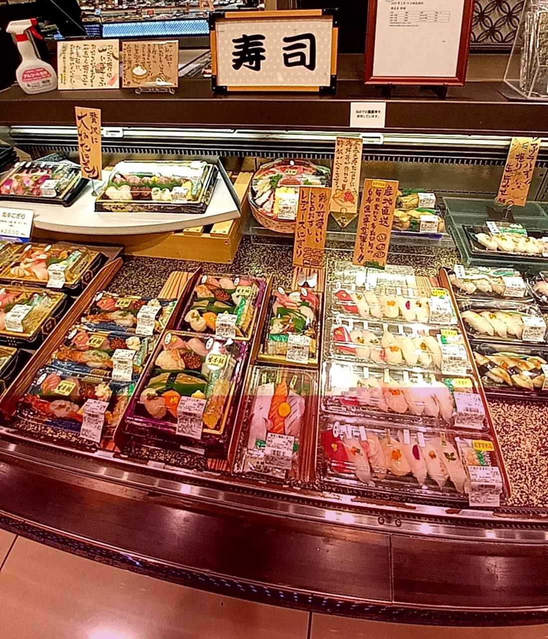 東京・日本橋の『日本橋三越本店』に出店している『吉川水産 日本橋三越本店』では、鮮魚のほか、『握り寿司』などのお寿司も販売しています。『握り寿司』は、特上寿司のネタに使用される高級魚が使用されていたりしながらもリーズナブルで、鮮魚店ならではのお寿司となっています。