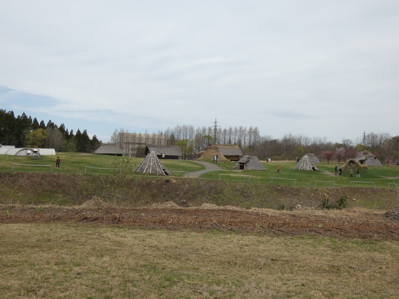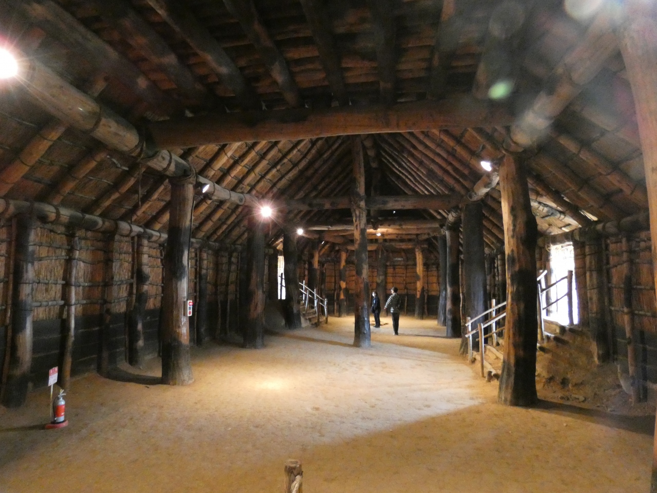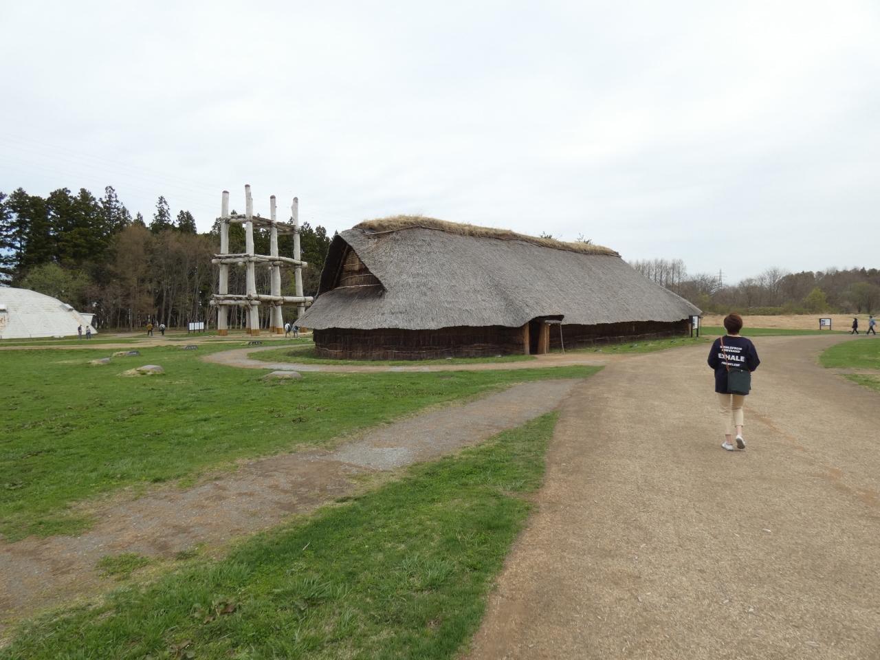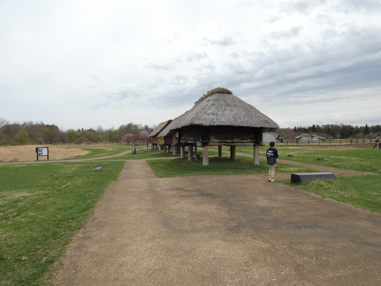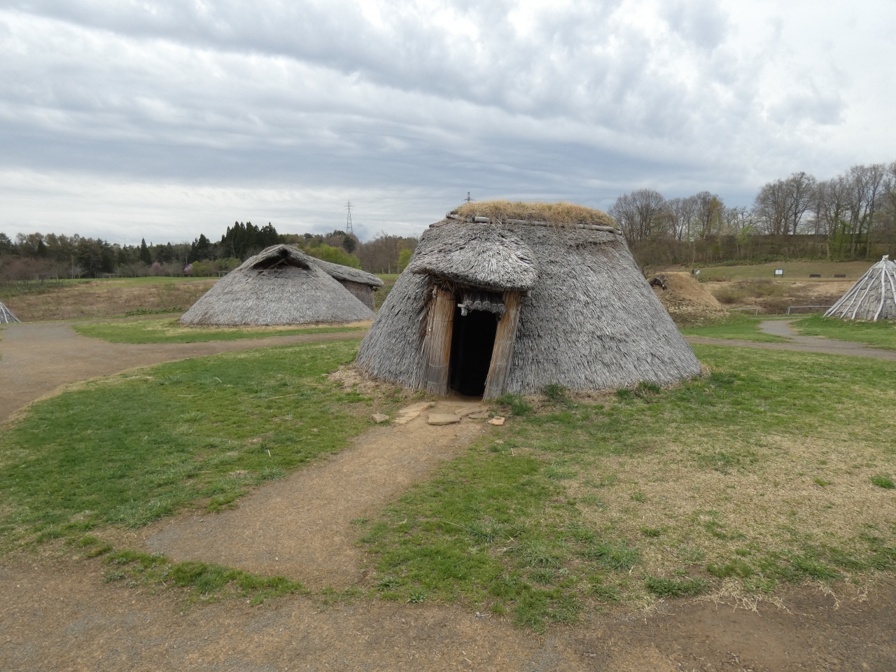 青森市内の三内丸山にある縄文時代前期中頃から中期末までの大規模集落遺跡。河岸段丘上に立地しています。平成9年(1997)国の特別史跡に指定され、令和3年(2021)世界文化遺産の一部に登録されました。広大な敷地に竪穴式住居や倉庫群、シンボル的な3層の掘立柱建物が再現されています。この遺跡の存在は江戸時代に知られており、本格的調査は平成4年(1992)県営野球場建設事前調査で始まったそうです。実際に見てみると凄さが分かります。