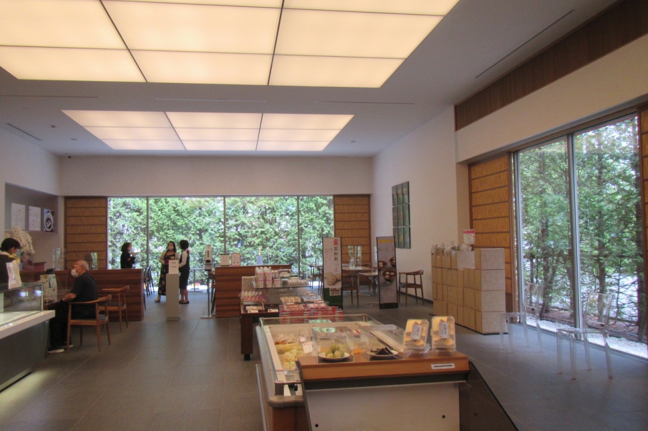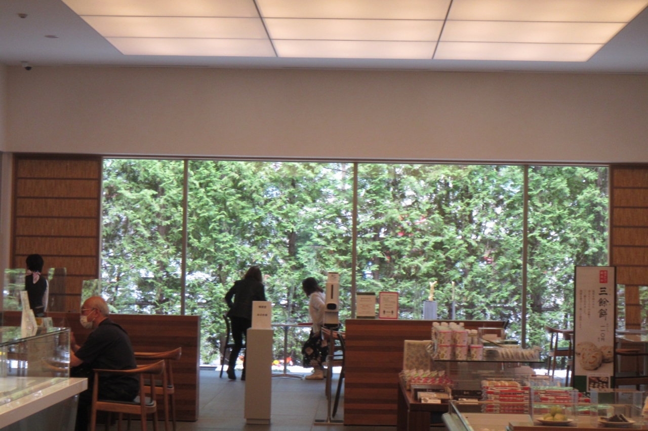 喫茶室(喫茶スペース)は、神楽岡店がプラタナス並木の神楽岡公園通りに面した緑の雰囲気なのに対し、豊岡店はお店の生垣の緑に面して、これも緑の景色です。
