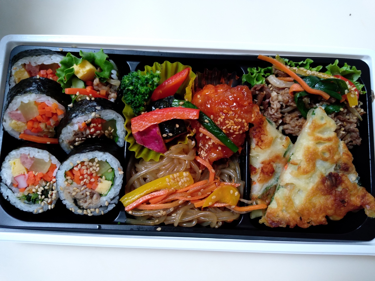 ルミネの地下にある。キンパは種類がいろいろある。テイクアウトとして、店頭で箱にはいっているのですぐ気軽にかえる。またキンパとチジミやチャプチェなどのお惣菜と一緒になったセットもある。キンパ結構ボリュームあります。