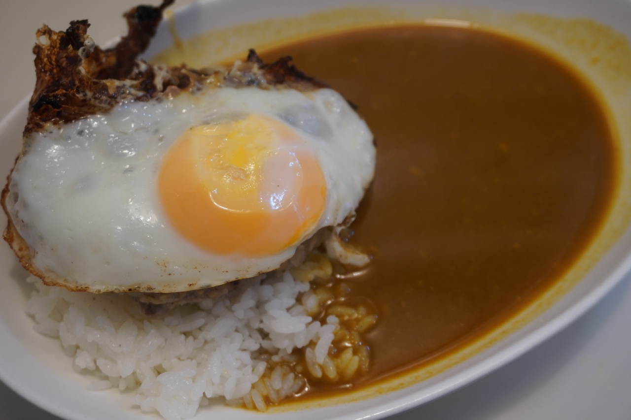 いただいたのは、バーグカレー。注文してハンバーグをこねるので時間はかかりますけど、しっかりお肉を感じる誠実な味わい。カレーの方はスープカレーのようにさらっとしていて、香辛料がよく効いていますが、そこになんともいえず奥深いうまさがありますね。