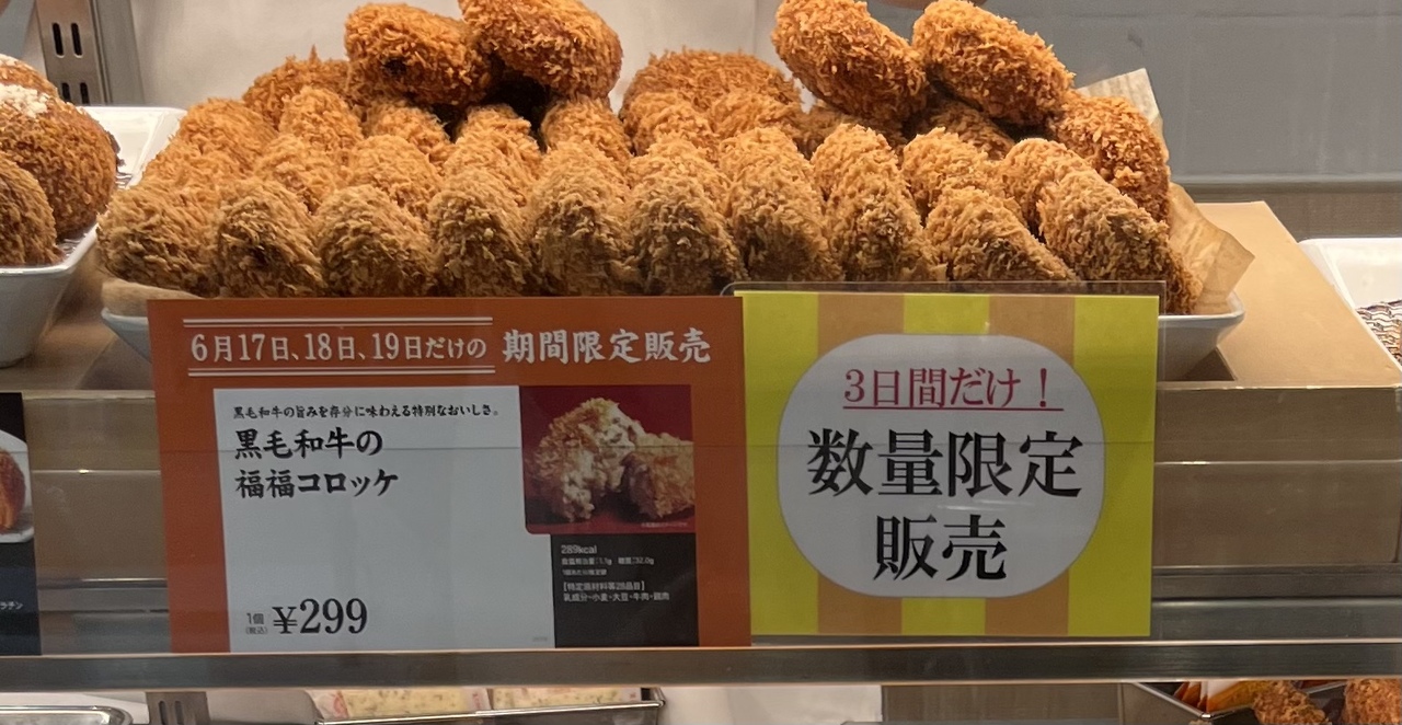 数量限定販売「黒毛和牛の福福コロッケ」¥299がありました。