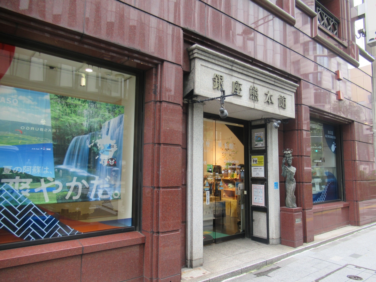 数寄屋橋交差点近くの外堀通りに面したところにあります。九州旅行を考えて、まず情報を集めるために銀座熊本館へ行きました。1階の物産販売を過ぎて、2階のくまモンコーナー脇にある観光資料の棚で阿蘇周辺の資料を見ました。観光担当の方が、県内の地図や阿蘇などの資料を出してくれて、具体的な道路状況やおすすめ箇所を話してくれました。秋の旅を考えていると話すと、わからないことがあったらいつでもいらしてくださいと言ってくれました。親切な対応に旅の計画が楽しみになってきました。個人旅行の心強い味方です。