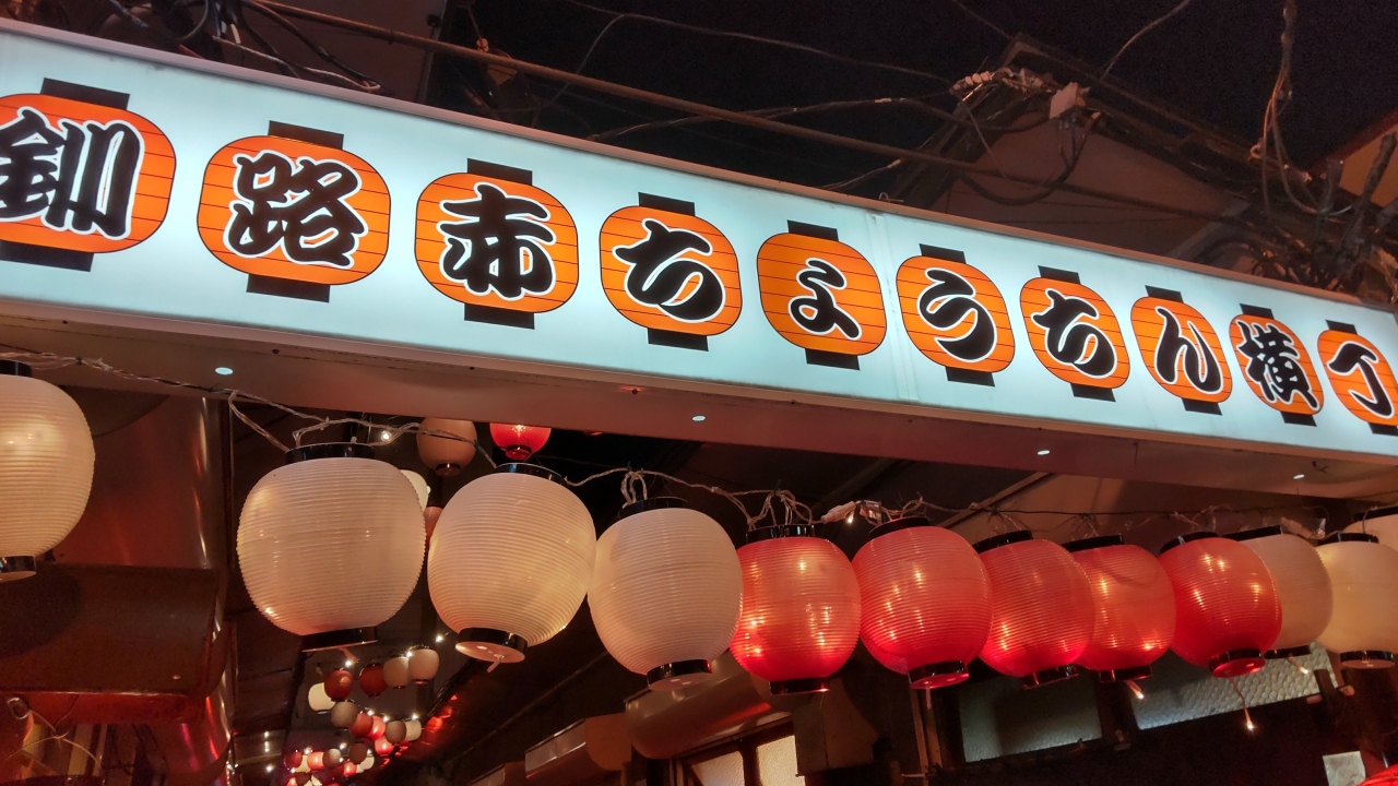 赤ちょうちんに照らされる飲み屋ストリートが現れます。小規模な居酒屋やイタリアンなど様々なお店がひしめき合って横丁を形成しています。