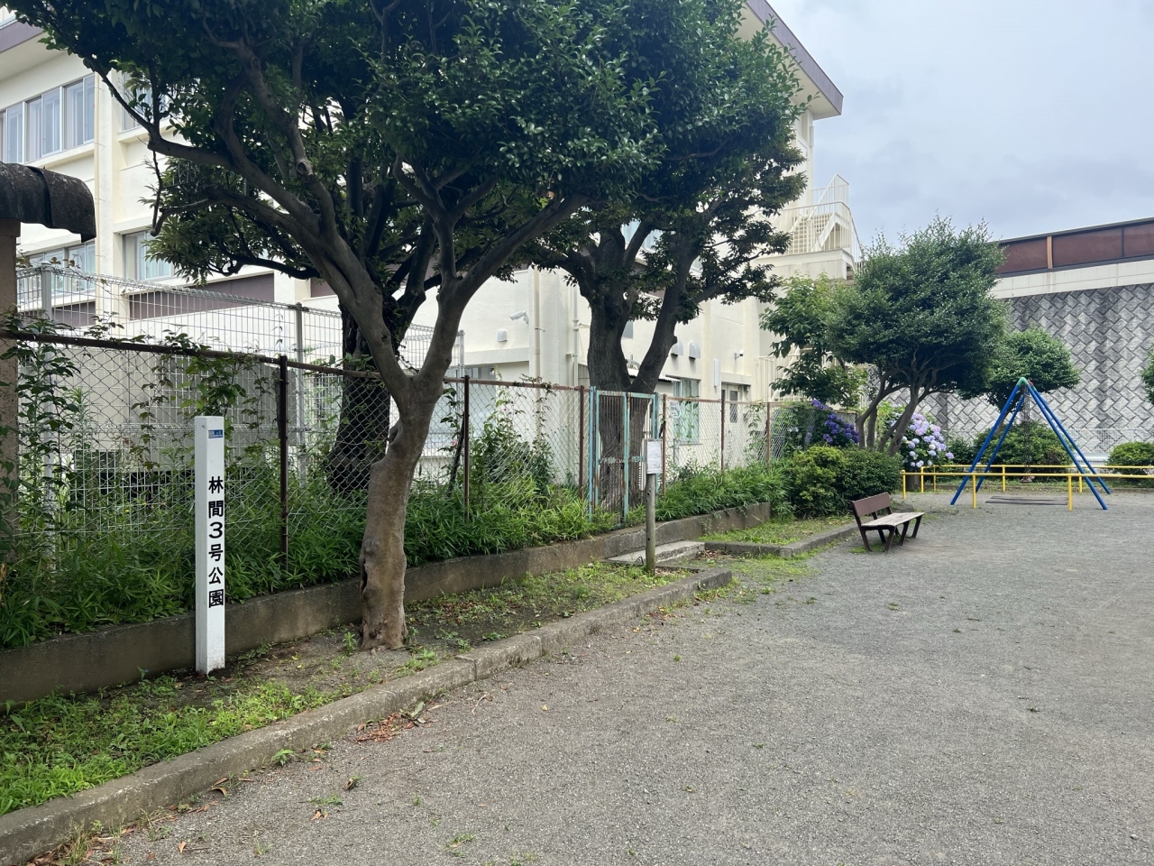 小田急線の南林間駅と中央林間駅のほぼ真ん中に、林間3号公園があります。小田急線に面して大和市特別支援センター・アンダンテの施設があり、この建物の裏側にある公園です。アンダンテの反対側はマンションで、2つの建物に挟まれるようにある、少し薄暗い公園です。