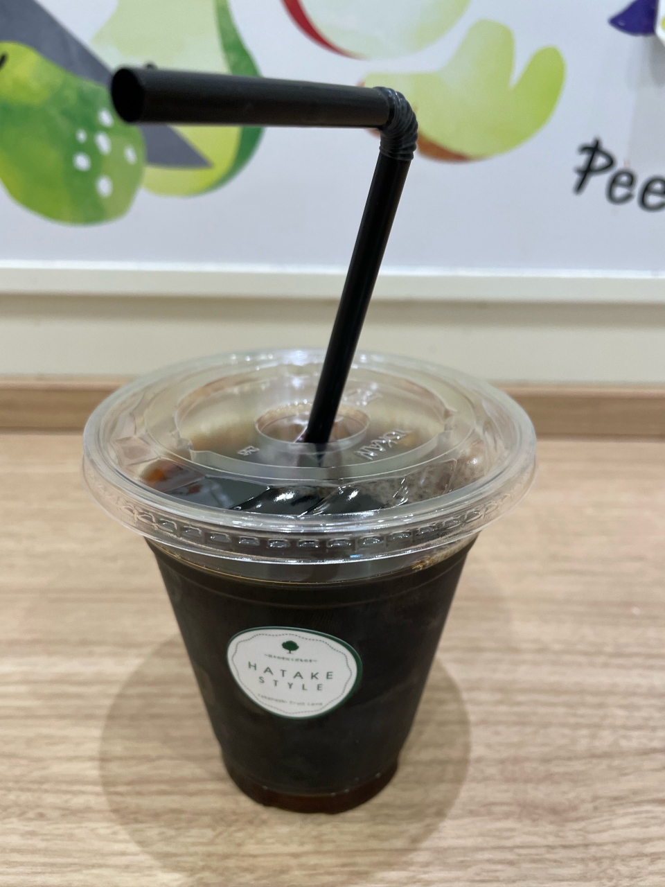 フルーツがウリのようですが、特に収穫時期でもないのでアイスコーヒーを注文。イートインしましたが、カウンターにハイスツールがあるだけで、駅ビルの入り口近くにある立地ということもあり、まったくもって落ち着かない環境でした。