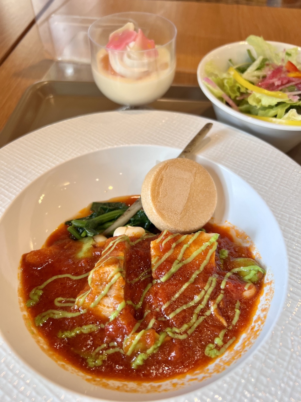 今回いただいたのは、お芝居『夢介千両みやげ』にちなんだ公演セットで、メインは三度笠と刀の飾りがあしらわれた豚肉と豆の煮込みでした。