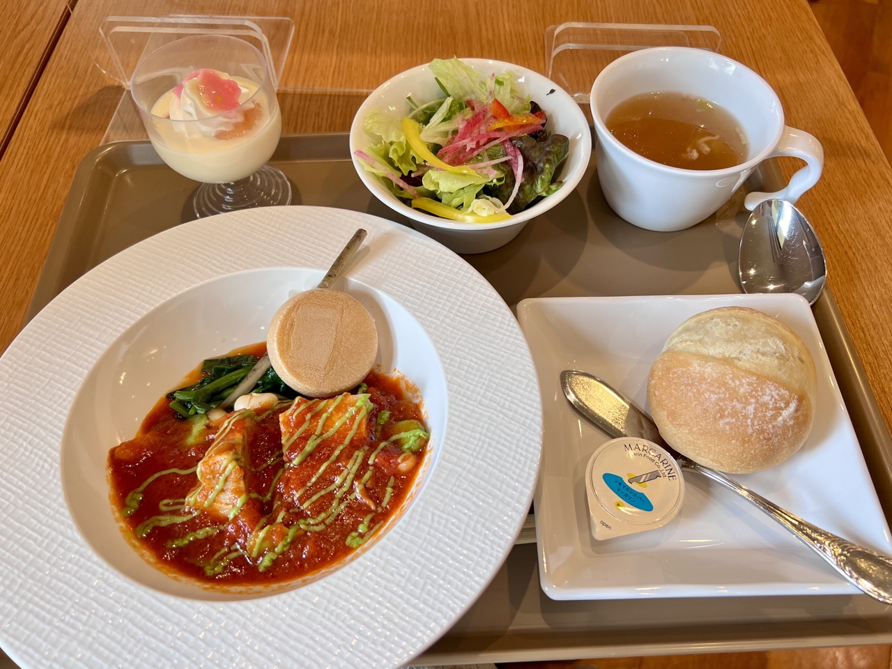 カウンターで注文して受け取るパフェテリア方式ですが、注文してからお皿によそってくれるわりにあまり温かくないというか、少し生ぬるいというか・・・