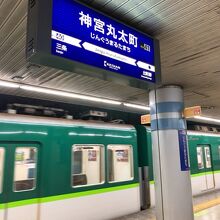 三条⇔出町柳の短い距離。 地上出口を出てから方向感覚をつかむには、鴨川の位置を確認すべし!