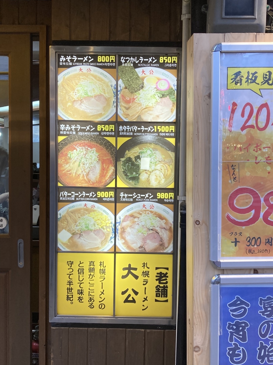 狸小路4丁目と5丁目の通りすぐのところにあるラーメン店。昭和41年創業のお店で、昔ながらの札幌ラーメンが食べられる。黄色の看板、カウンター席とテーブル席の店内、昭和の雰囲気が漂う。
