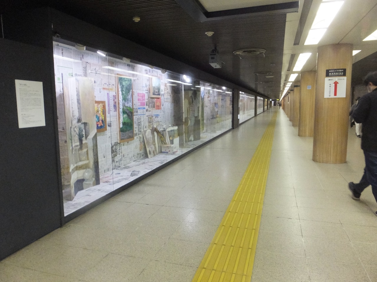 大通からバスセンターまでの長い地下道の壁面がまるごとギャラリーになってます。殺風景になりがちな地下道のうまい利用のしかただと思います。現在展示中の内容を書いたパンフもありました。展示に目を向けている人はほとんどいませんでしたが、地元の方が多い時間帯だったのでしかたないでしょう。なお、札幌は他にも2箇所で似たような利用の仕方をしている地下道を見ました。