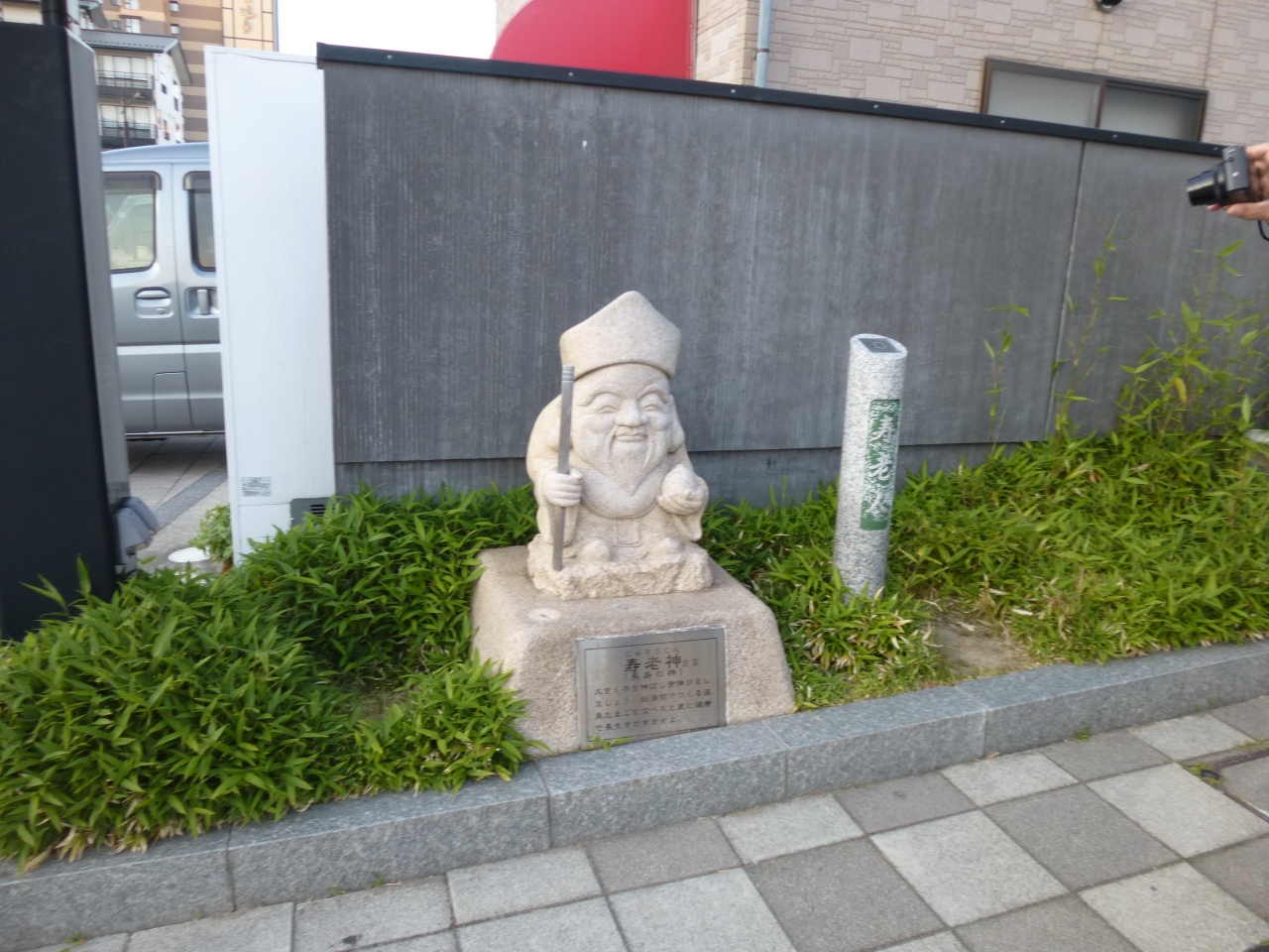 和倉温泉には、源泉100%の銭湯、和倉温泉総湯があります。木のふんだんに使われた美しい建物の前、向かって左側に足湯の施設があり、その近くに、寿老人像があります。足湯でほっこりしながら眺められる場所です。さらにゆったりした気分にさせてくれるお顔です。