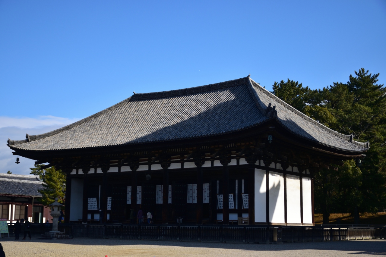興福寺は1300年以上の歴史を持つ寺です。奈良市内の観光スポットとして親しまれています。中央に鎮座する中金堂がメインですが、東側には東金堂があり、西向きに配置されています。横には五重塔もあり、写真撮影する人で賑わっています。