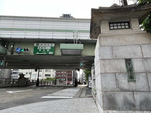 東横堀川にかかる橋です。川の上を高速が通っていて、「高麗橋」という名の出入り口もあるので、地名としても認識しやすいですね。エリアを東西に抜ける「高麗橋通り」という主要な道路が走り、その南北に住所としての高麗橋というのも存在していています。東横堀川にかかる橋のなかでも江戸時代から格式の高い橋だったとのこと。明治時代になってすぐ東詰に「里程元標」ができて、ここから各地への距離を測ったそうです。