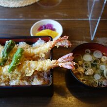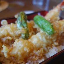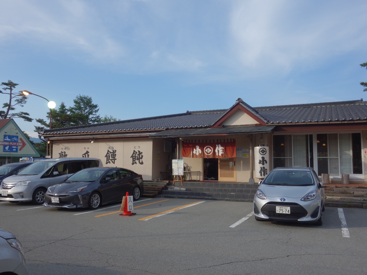 古い大きな民家を改築しているのでしょうか。入口で靴をぬいで,板の間にあがります。大きな部屋か,廊下みたいなところにテーブルがあります。まあ,昭和の気分です。江戸時代かも。ほうとうが名物ですが,ほうとうの好きでない人には関係ないでしょう。海老二匹の天丼をたのみましたが,正直言って,普通の味です。相方はほうとうを頼んだのですが,本格ほうとうのようでした。まあ,観光客向けのところですので,それなりのところでしょう。