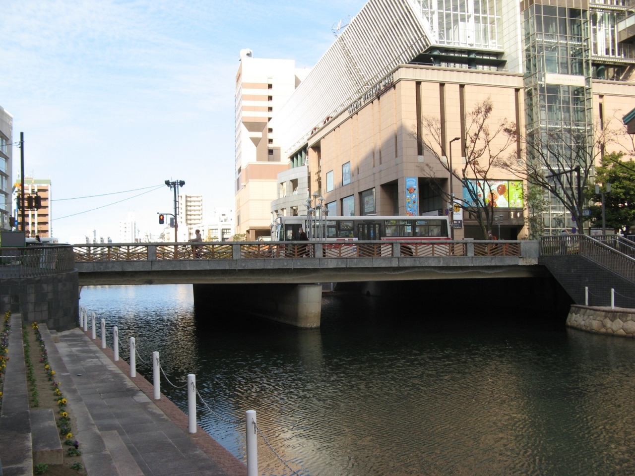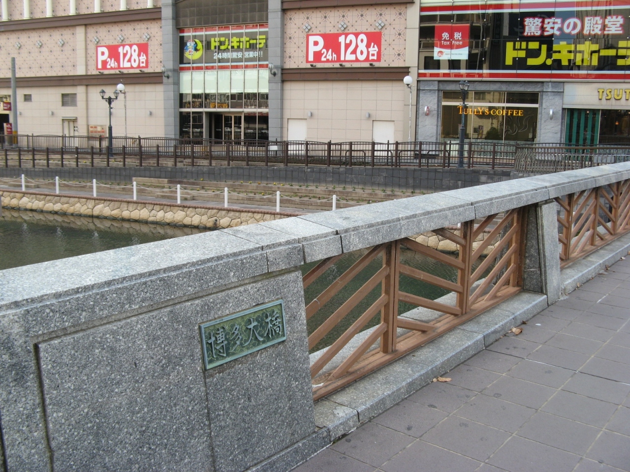 博多川に架かる橋で東中洲と川端を結んでいます。“大橋”と名付けられていますが長さも短く、高さも無く“大橋”と言う感じは無いごく普通の橋です。デザイン的にも特別面白味は無いのでわざわざ観に行くほどのことは無いと思いました。