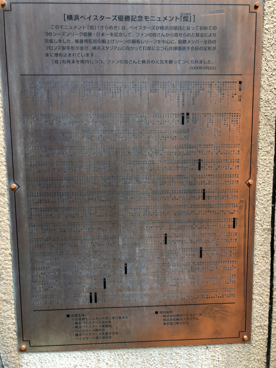 モニュメント説明書きに「ベイスターズが横浜の球団となって初めてのリーグ優勝・・云々」とあったので、そこまでファンではない横浜市民としては歴史が気になり調べてみました。