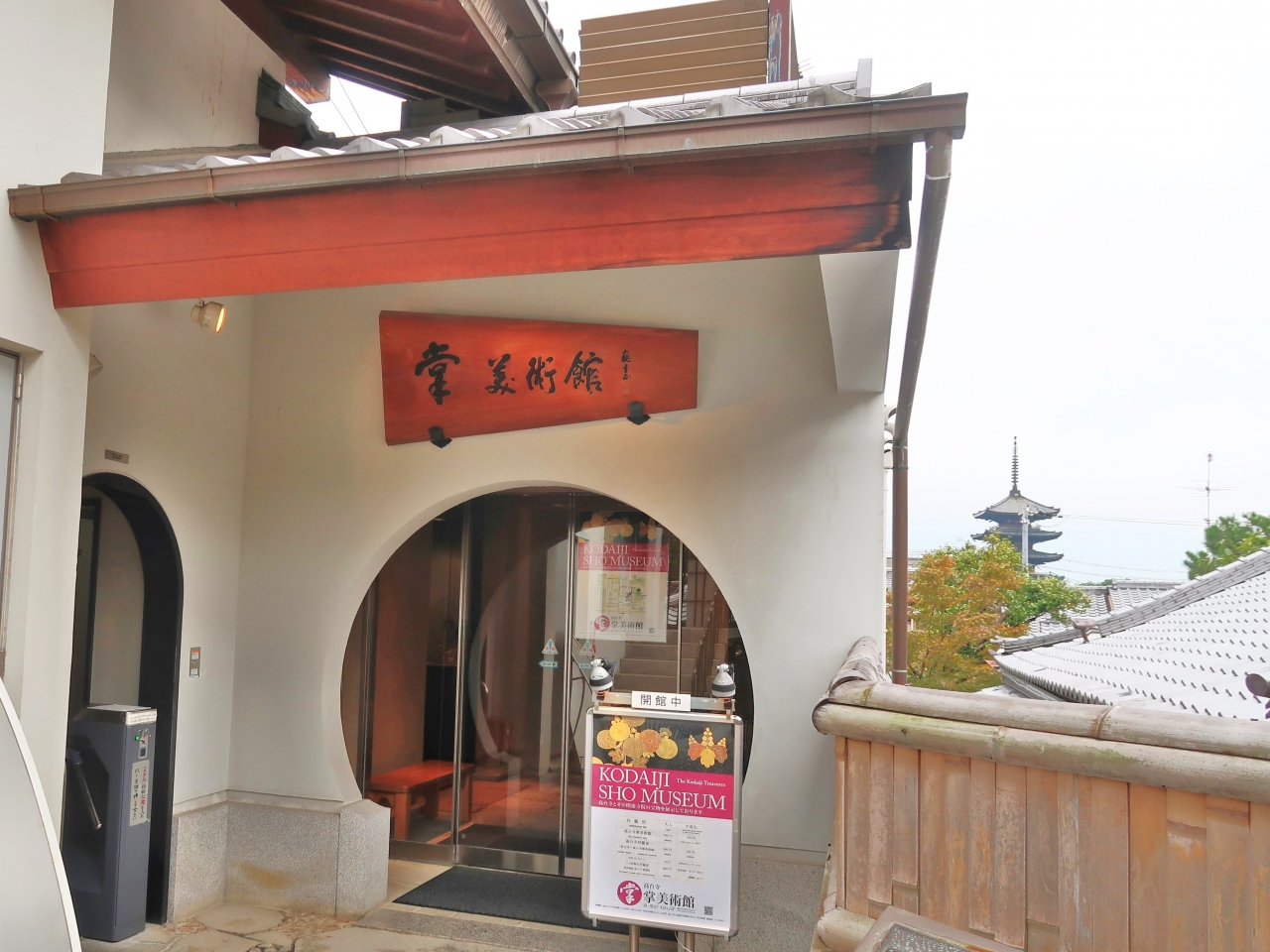 高台寺の門前近くにある小さな美術館です。高台寺、圓徳院、掌美術館の共通割引拝観券 900円を購入して入館、北政所ねね様没後四百年記念展示を見学しました。肖像画はもちろん、蒔絵の食器類、洗面道具、化粧箪笥、歌書を納めた箪笥など、ねねの生活用品が展示されていて、戦国女性の日常生活に親近感を覚える内容でした。ワンフロアだけのコンパクトなミュージアムなので、所要時間は10分程度です。