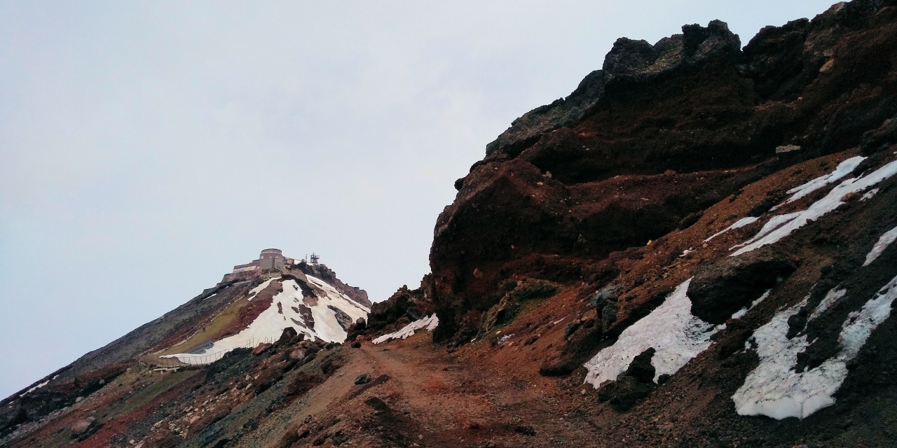 富士山に登ってきました。開山前ですが、事前に情報収集して雪渓登りをしなくても、迂回路があって安全に登れることを確認。あとは体力の問題。幸い高山病にならなくてなんとか無事に剣ヶ峰まで登頂、下山できました。雲があって下界の眺望は終始悪かったですが、頂上火口は雪も残ってきれいでかつ迫力あがありました。