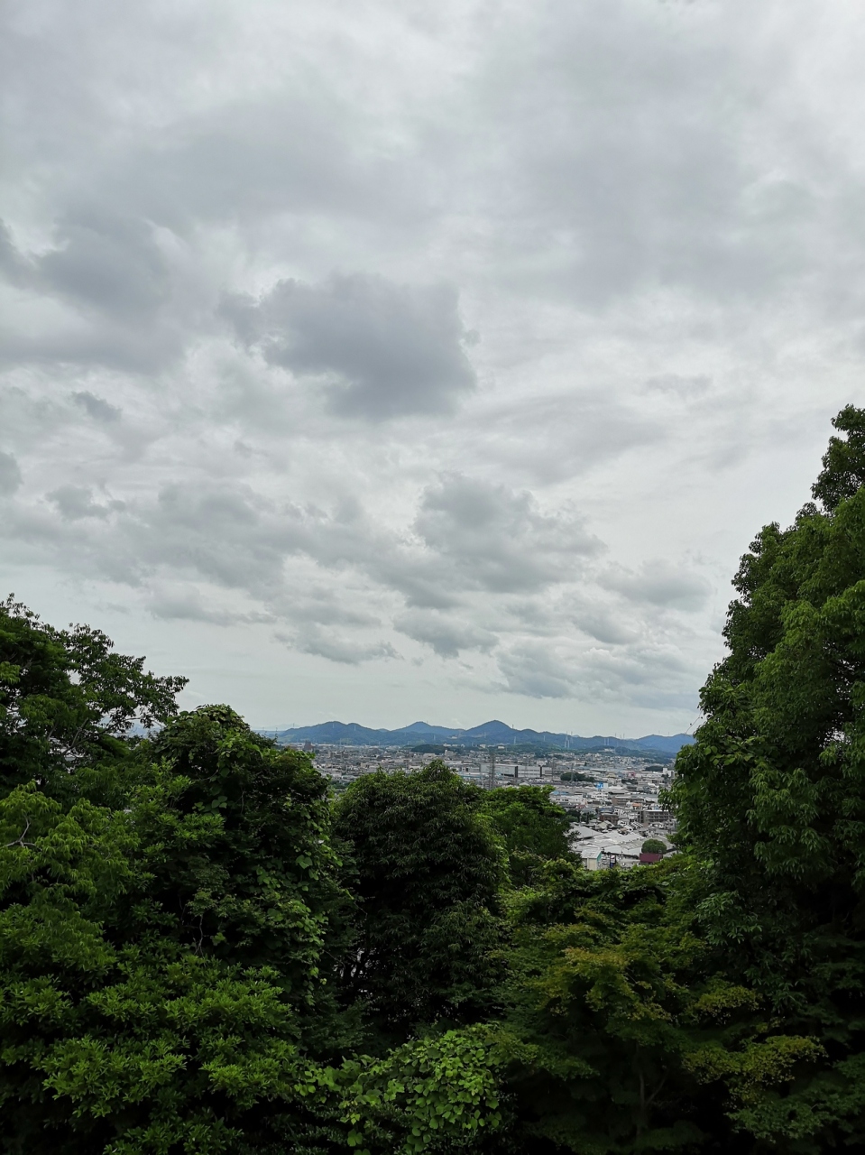 ホテルの目のまえにあったので朝の散歩で登頂。平野の中にあるので標高の割には上る感じがありました。かつては織田信長の命令で山城が建っていたそうですが、見晴らしもよく、確かにここならお城が置かれるのはわかるような気もしました。