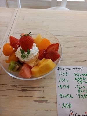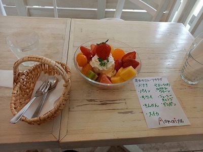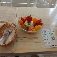 鶴岡駅から徒歩で行かれます. 初めに待合椅子ある中2階でオーダー&現金でお支払いします. お席はさらに上階にあります. 大変ご繁盛の様子で飲食空間は上手く増築されていて窓際に面した席、個室ブース状などなどバリエーション豊富です. 頂いた「9種類」にものぼるフルーツはどれも瑞々しく大変美味しいです. 手書きのメモが添えられており「これは?」と確認しつつ頂くのも楽しかったです.