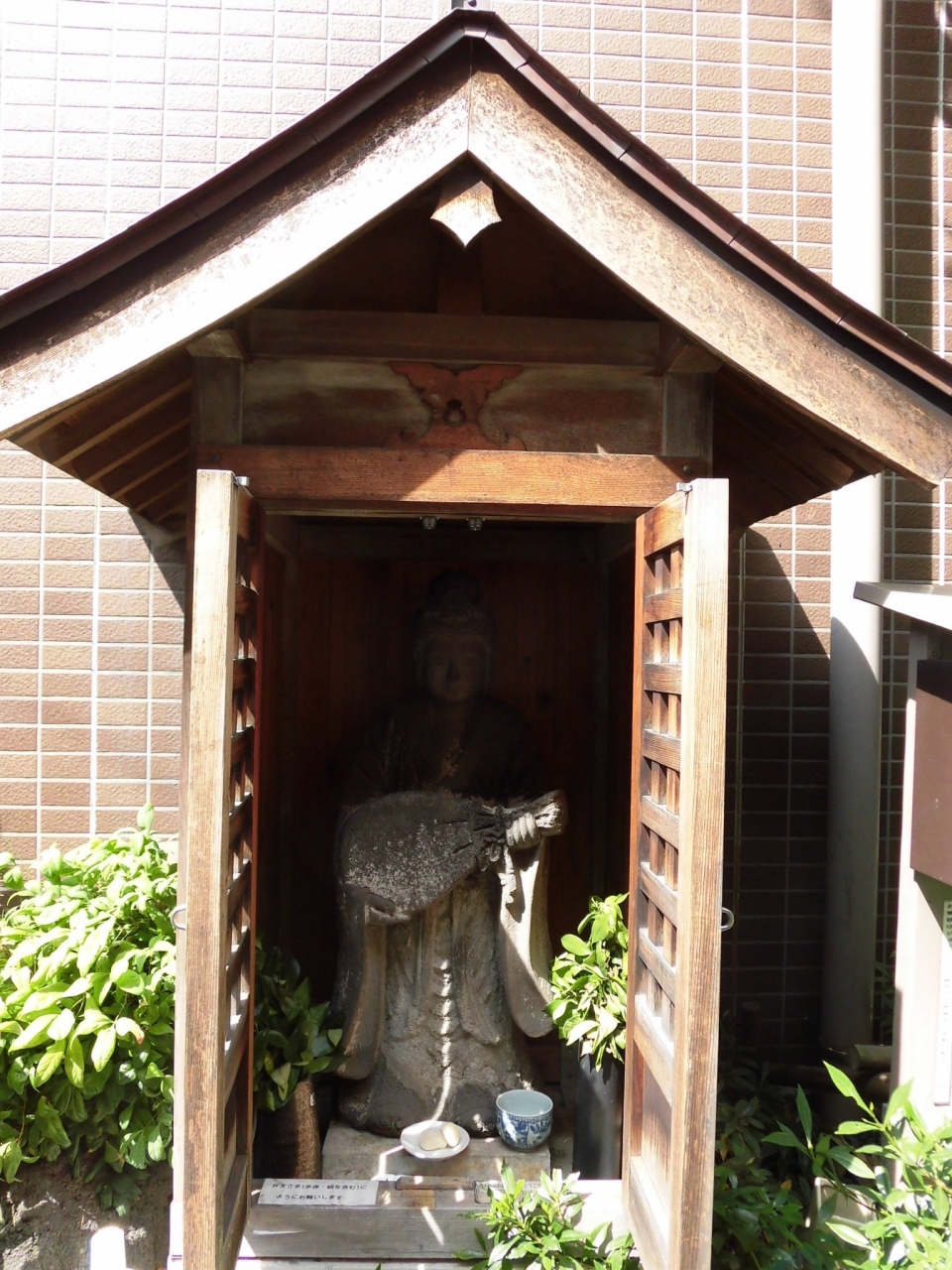 三ノ輪周辺を散策していた時に、ジョイフル三ノ輪商店街を抜けた先で、赤い幟旗が立てられていたので立ち寄りました。この辺りにあったお風呂屋さんの中庭に祀られていた、弁天様のお社が、細い路地裏にありました。扉が開いて得いたので、お顔を拝見しながらお参り出来たので良かったです。