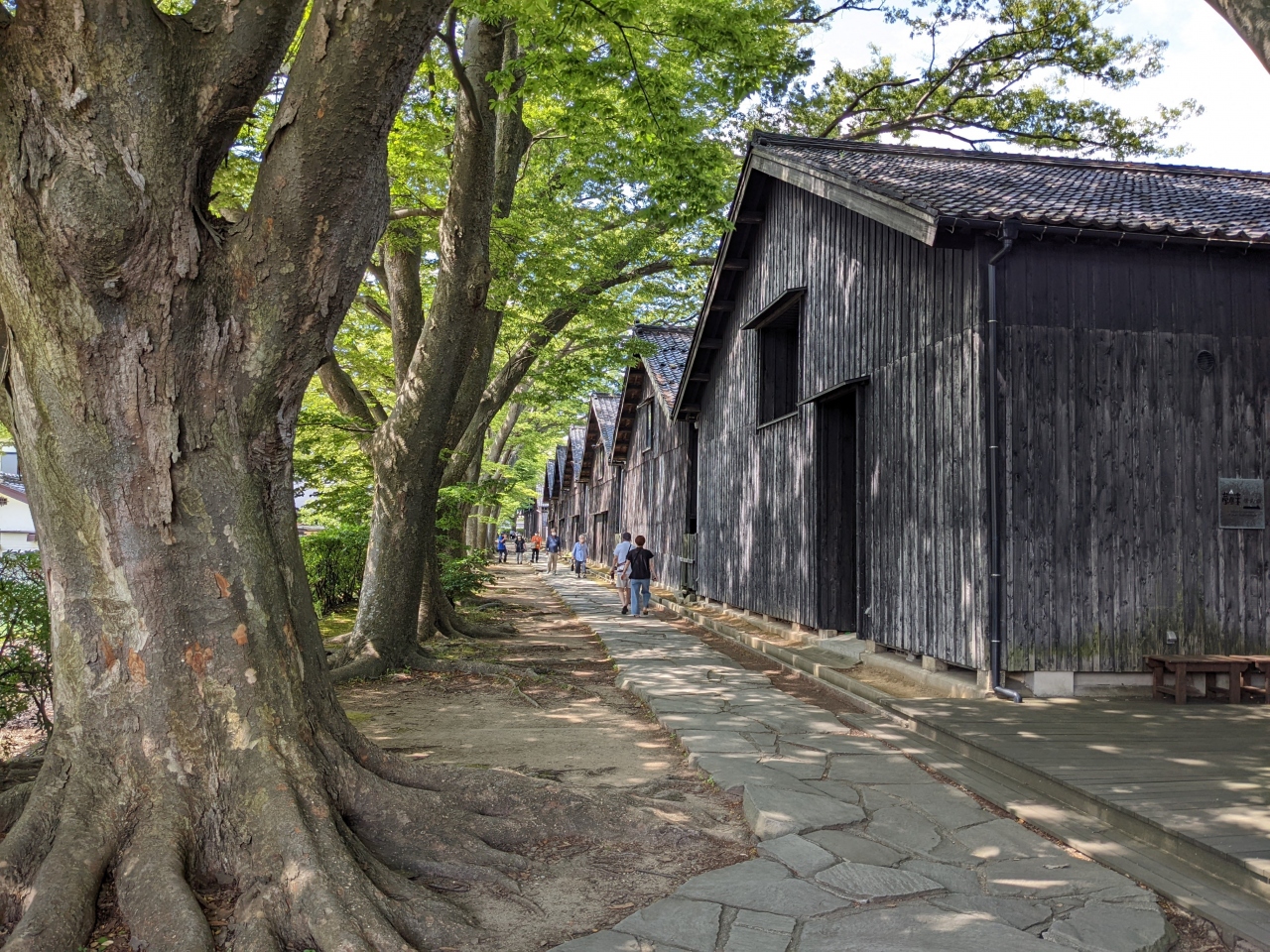 酒田市内での人気ナンバーワンスポット。欅の木の歩道がインスタ映えします。まあ誰が撮っても同じ構図になりますが。意外と新しく江戸時代の建造物ではなく、明治期に建てられたものでした。米の倉庫のままにしておくのではなく、スタバでも出品させると大人気になりそうだけど。。