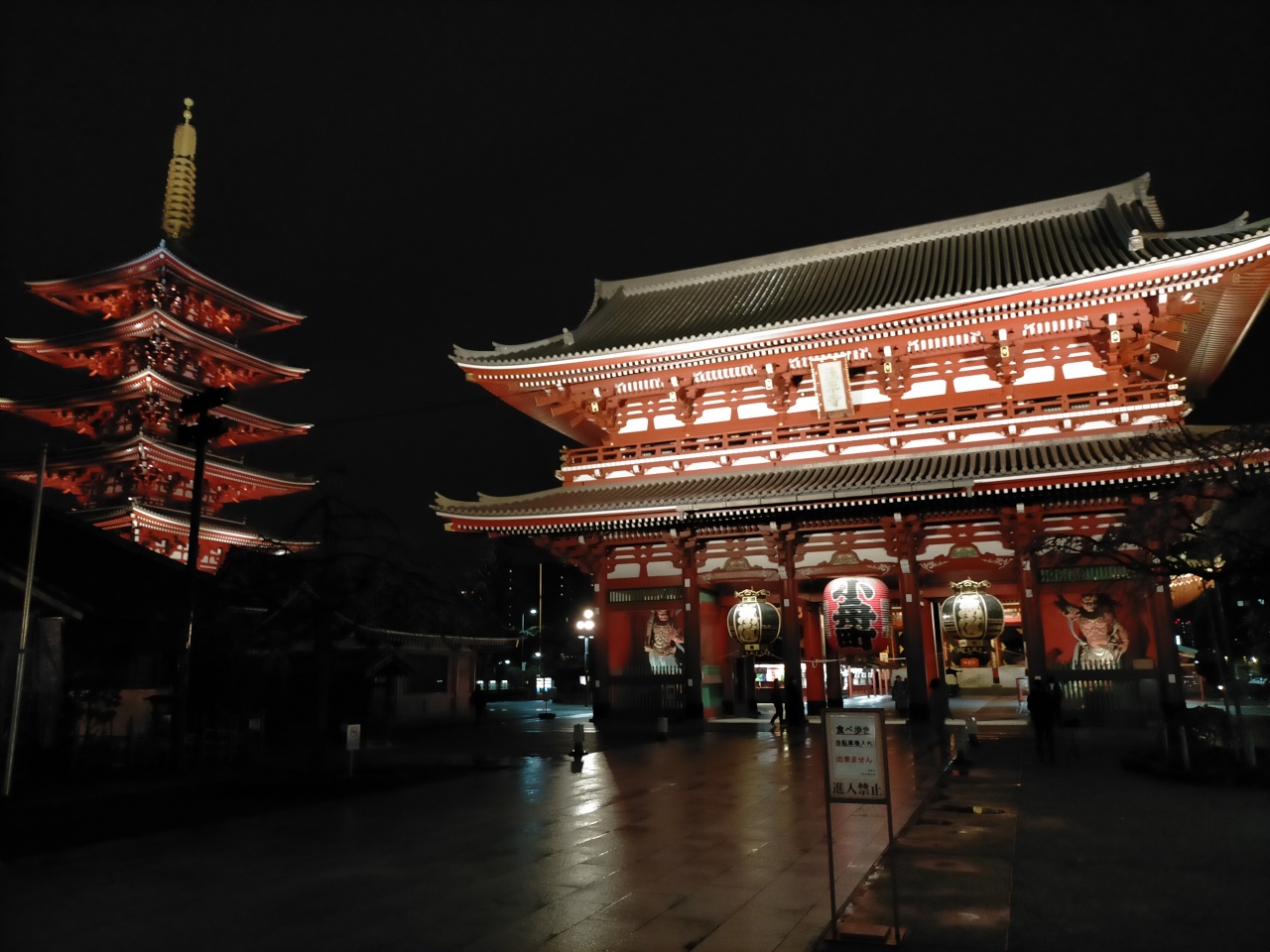 宝蔵門を今回の訪問時には、新型コロナウイルス蔓延中で、人数も少なかったでした。添付写真のように、夜でしたが、普段の感じよりはだいぶ静かすぎて活気がなかったでした。でもライトアップされる姿は、絶対見逃せません!