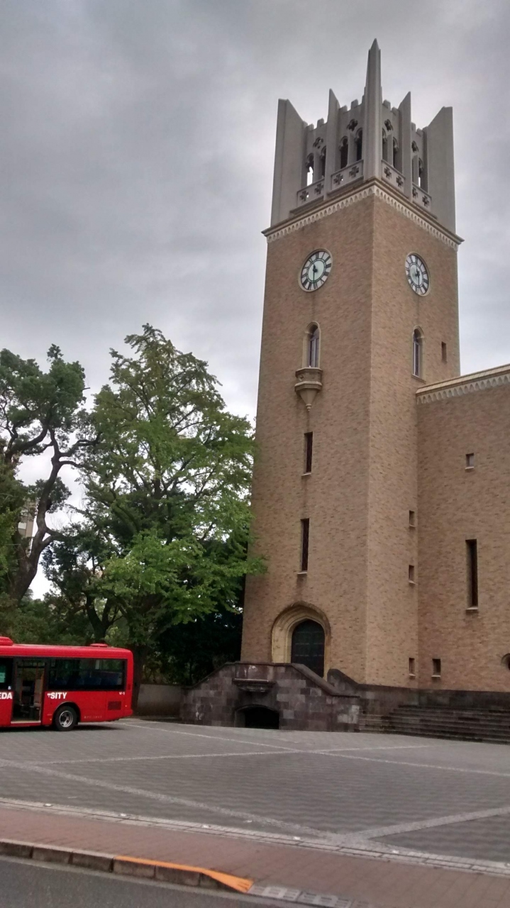 馬鹿田大学卒業ならずの人でも、大隈記念講堂を見れば、その威厳あふれる姿に、大感動すること間違いなしです。添付写真のように、バスが早稲田キャンパスと大久保キャンパスを結んでいて、学生時代はめちゃ重宝しましたねえ。