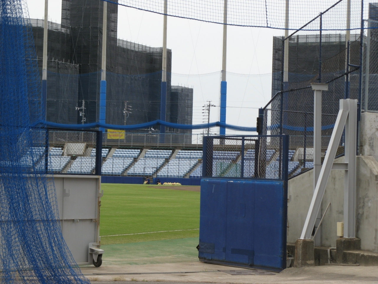 中日ドラゴンズの球場で、ナゴヤドームに移る1996年まで一軍の公式戦が開催されていた球場です。今は改造されドラゴンズの室内練習場と寮とファームの本拠地になってます。フェンスの隙間からは練習風景も見え、昔の熱戦を懐かしく思い出しました。