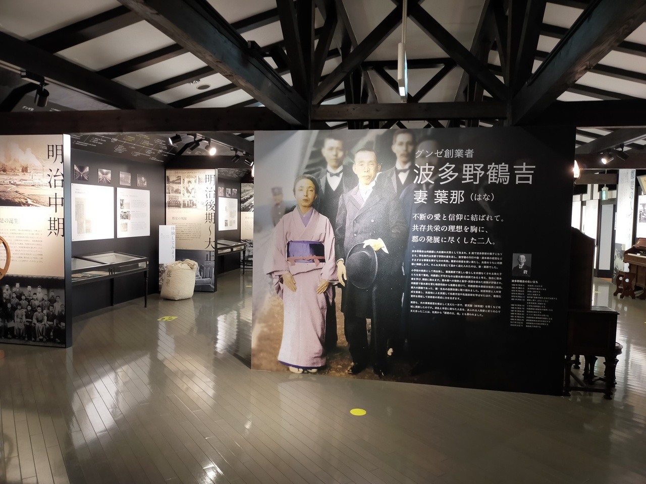 グンゼが「郡是」から始まったことが理解できて、興味深い歴史が学べます。3つの蔵が2階の渡り通路でも繋がっていて、周遊できます。グンゼ商品の紹介もある企業博物館で無料ですが、予約も必要なく見学できます。