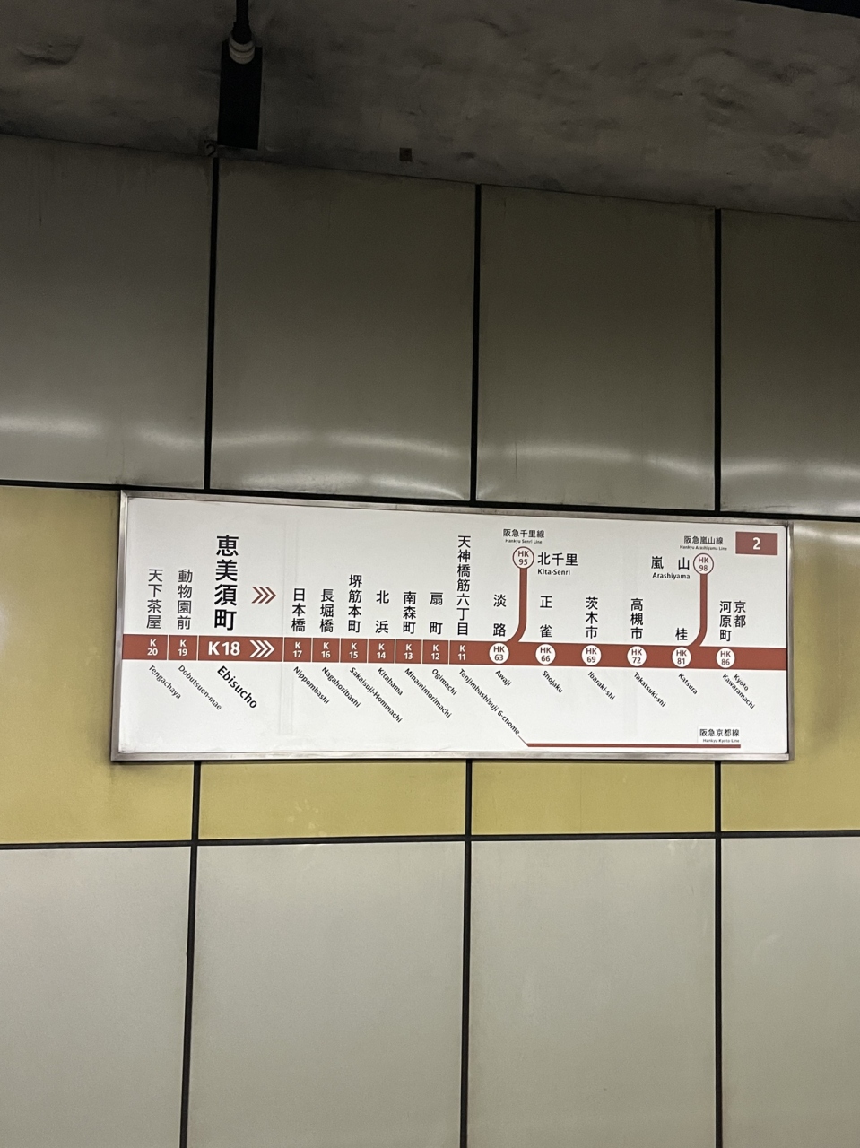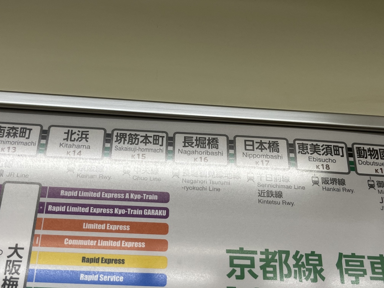「恵美須町駅」から こちらの【 大阪メトロ 堺筋線 】に乗車しました。