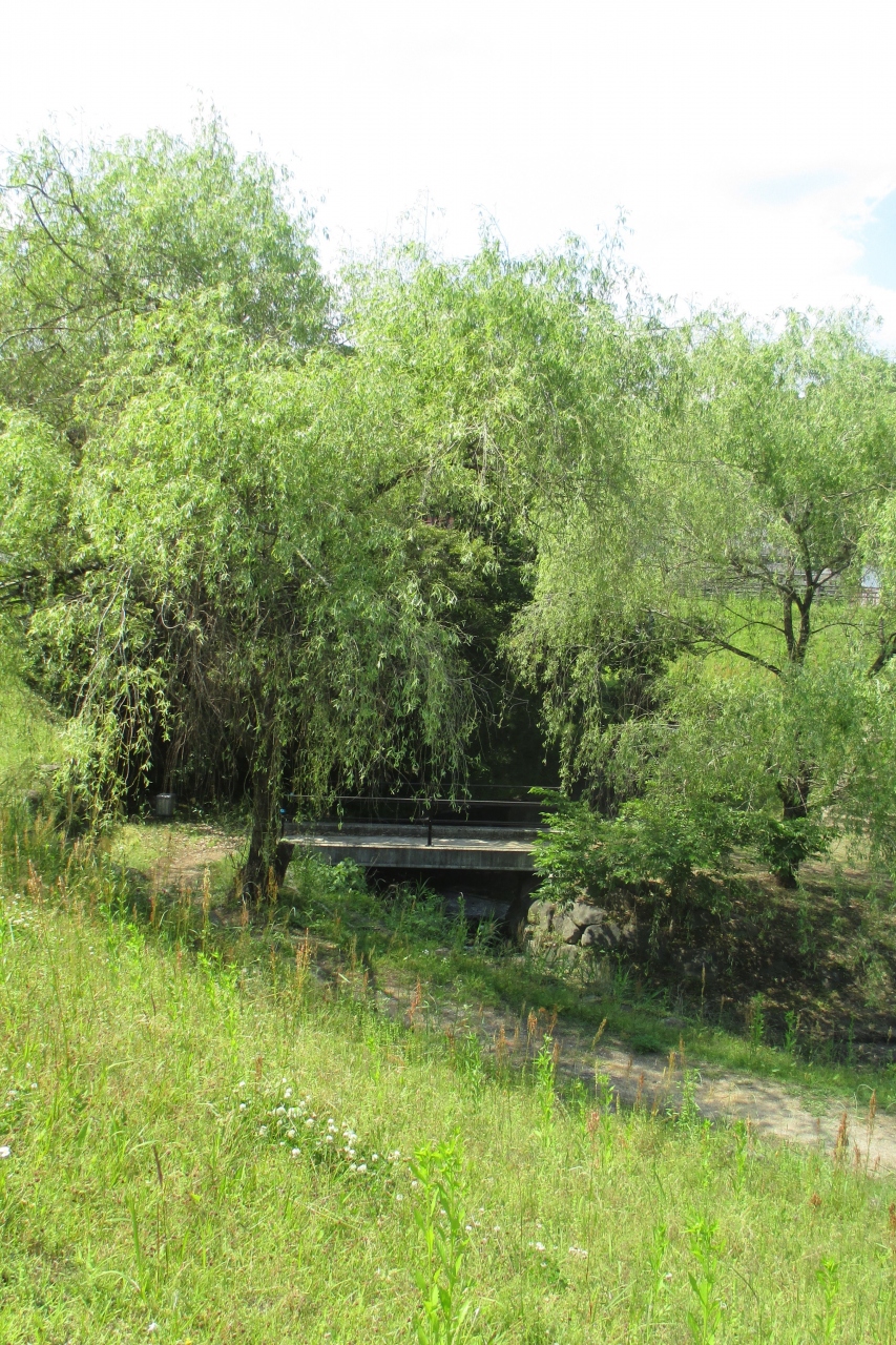 稲葉川やすらぎ公園は、稲葉川の河原が拡がった様なところに造られた親水公園でした。柳を始めとする緑に茂った木々が拡がっていて、その中をホタルが舞うという小川が流れていました。公園の中には遊歩道が造られていますから、散策にも良さそうです。緑の少ない都会に住んでいる者から見ると、毎日でも訪れたいと思いますが、こちらでは人影がまったくありませんでした。