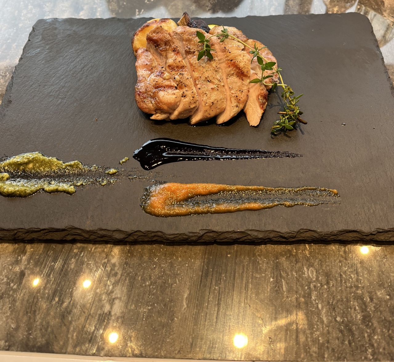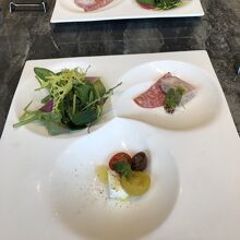前菜、肉料理、パスタ、デザートのコースで、思ったよりもボリュームがありました。海辺の眺めの良い店内で、雰囲気も良いお店でした。