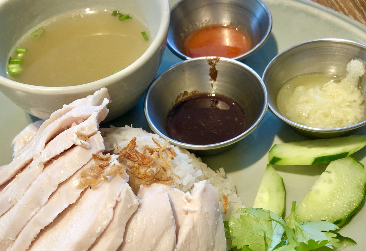 アジア料理全般なのでタイ、ベトナム、シンガポール、あたりの人気どころのメニューはだいたい揃ってる感じでした。開店と同時にランチに入ったところ、平日なのに次から次へとどんどん客入りがあり満席になりました。海南チキンライスを食べました。