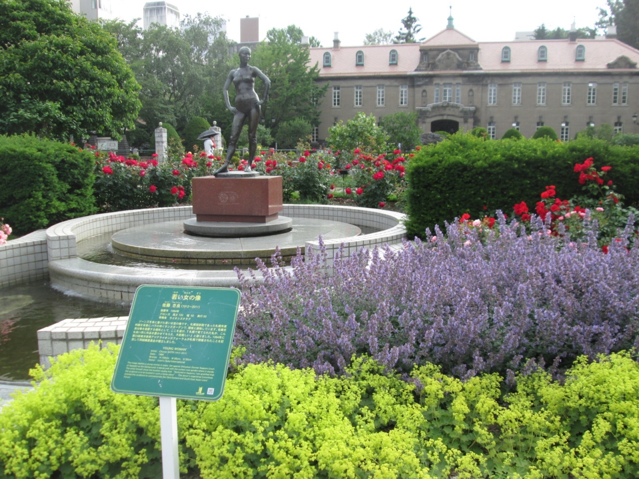 大通公園12丁目のサンクガーデン、通称バラ園の西端にある女性像です。