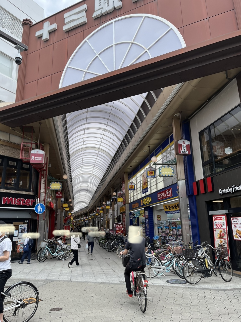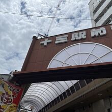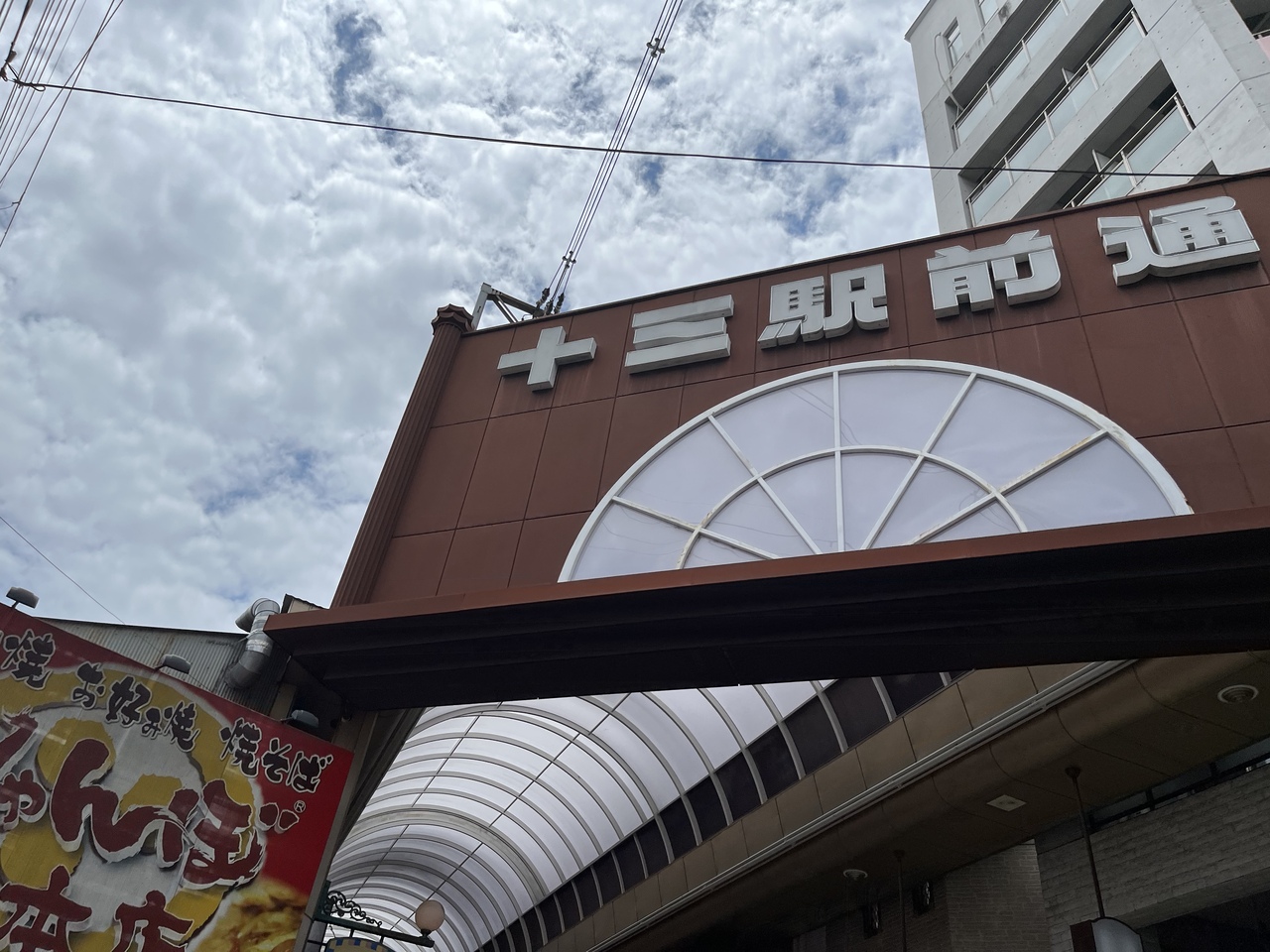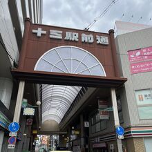 「阪急十三駅」の東口を出て すぐのところにある こちらの商店街【 十三駅前通商店街 】